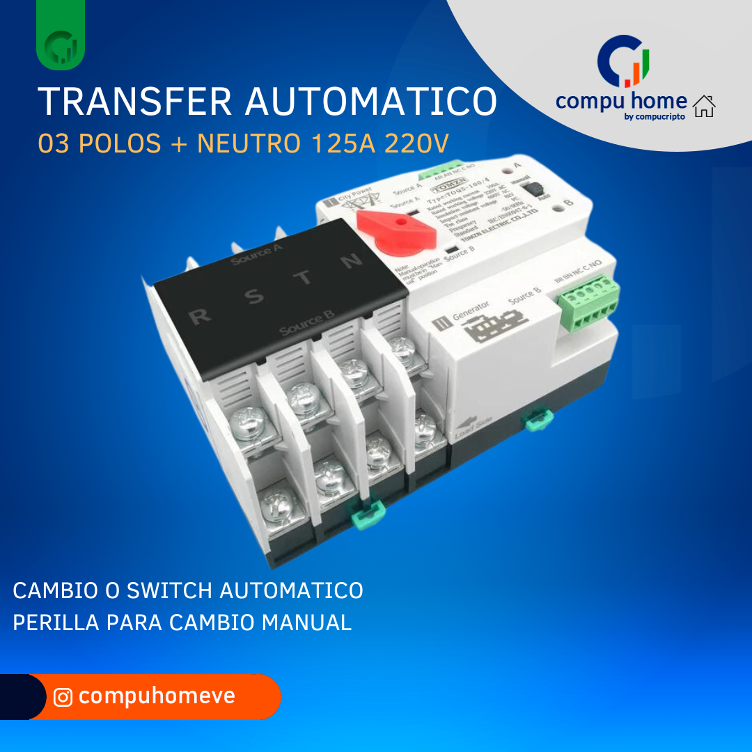 Transfer Switch para Planta Electrica 4 Polos 220V 125A Automatico y Manual